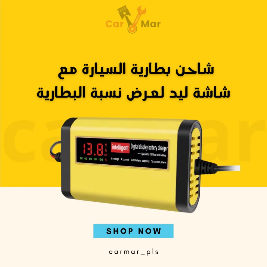 🔌 شاحن بطارية سيارة مع شاشة ليد