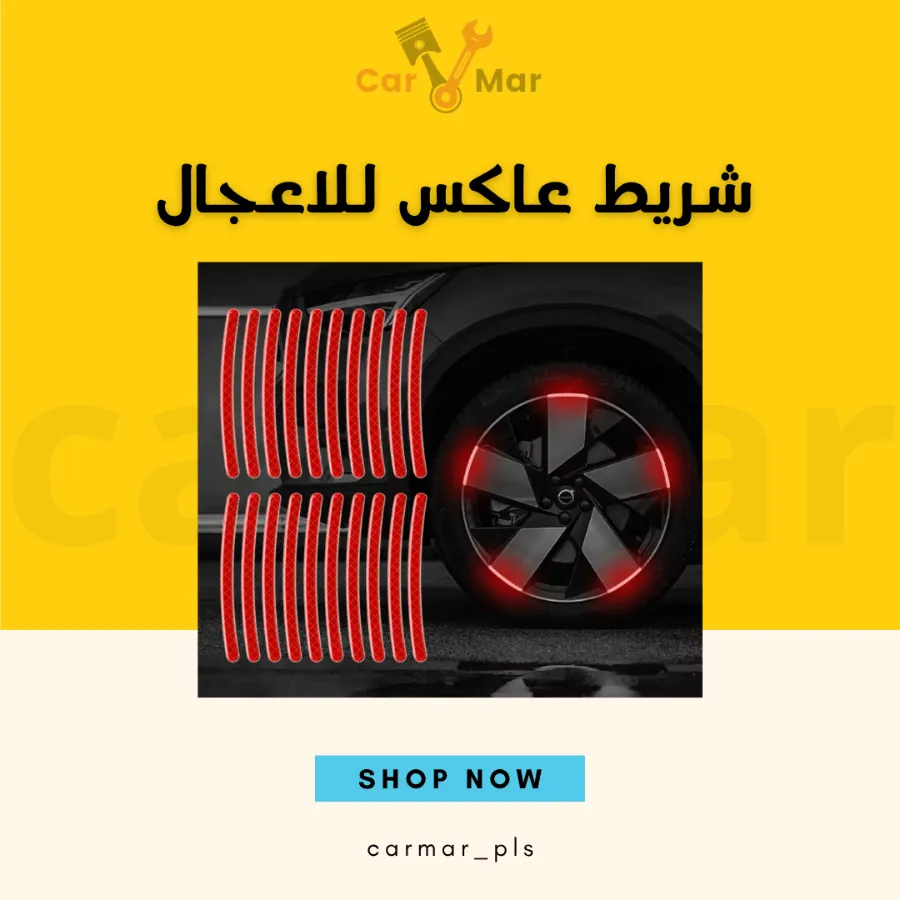 شريط عاكس للعجلات – يعطي مظهراً رياضياً لجنط السيارة ويزيد من وضوحها ليلاً، مما يعزز الأمان ويضيف لمسة جمالية للسيارة