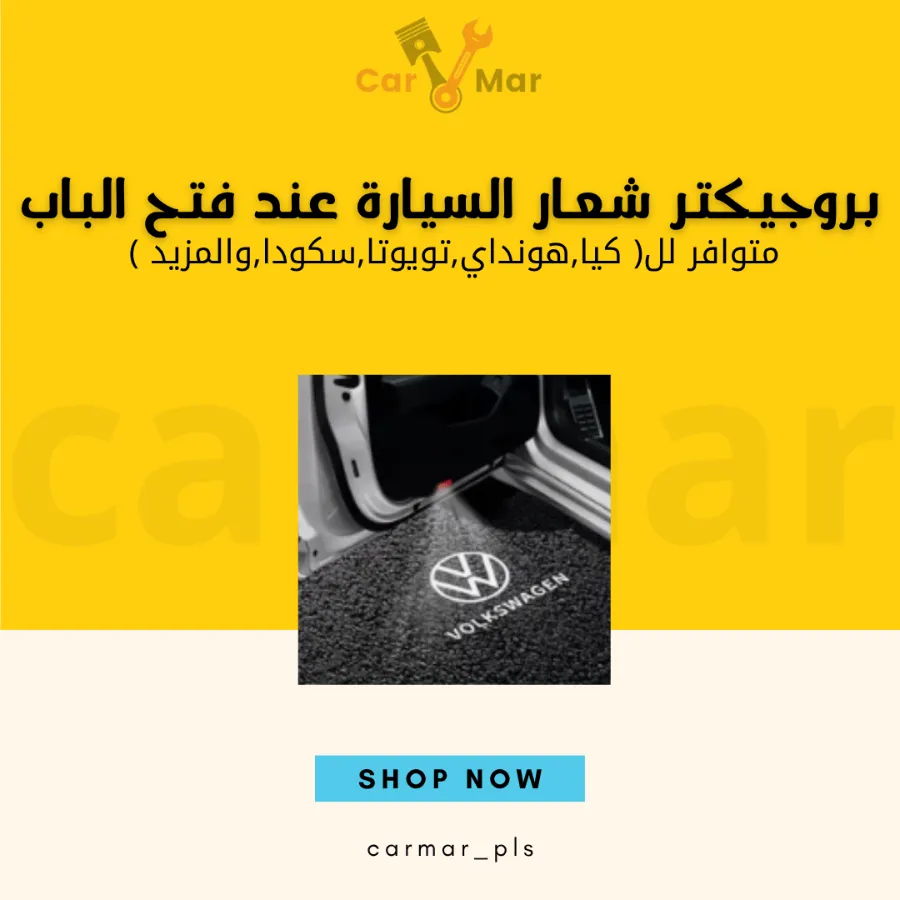 أضف لمسة فاخرة لسيارتك مع بروجكتر يعرض شعار سيارتك بشكل ضوئي أنيق على الأرض عند فتح الباب. متوفر لشركات متعددة مثل: كيا، هيونداي، تويوتا، سكودا والمزيد. سهل التركيب ويعمل تلقائياً مع فتح وغلق الأبواب.